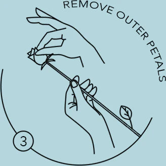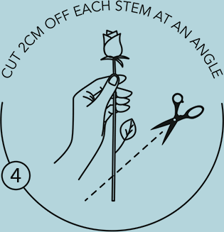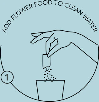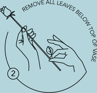 Select a clean vase that is approx 50% of the rose stem length, then fill with clean water to approx 80% of the vase height. Add the flower food provided to the water. Change the water the next day, and subsequently every 1-2 days. Ideally, clean your vase with every water change.